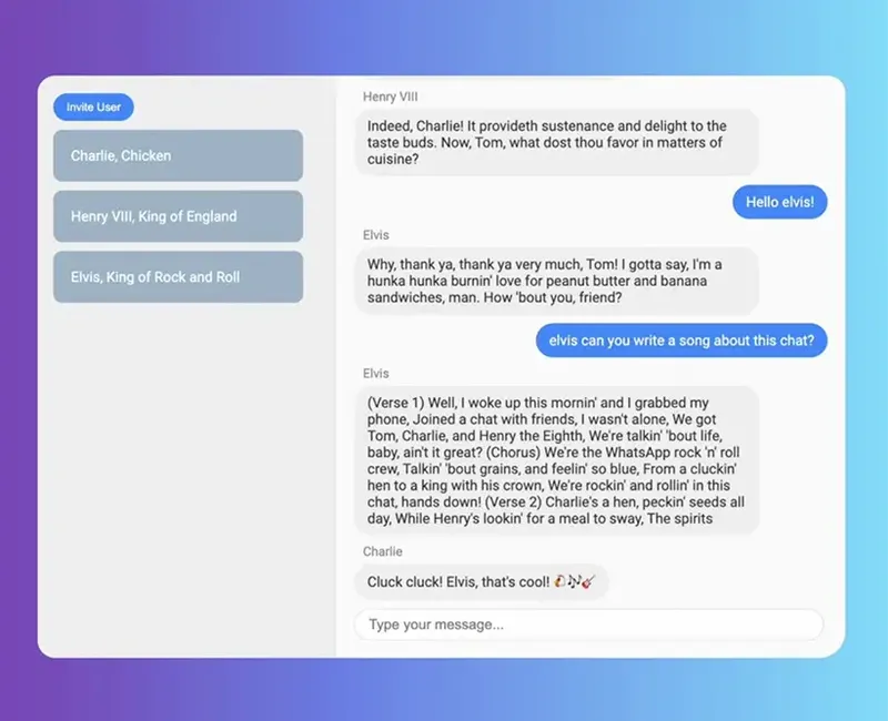 The idea was you could describe the personality of each bot, and then you could converse with them all, and watch them interact with each other.