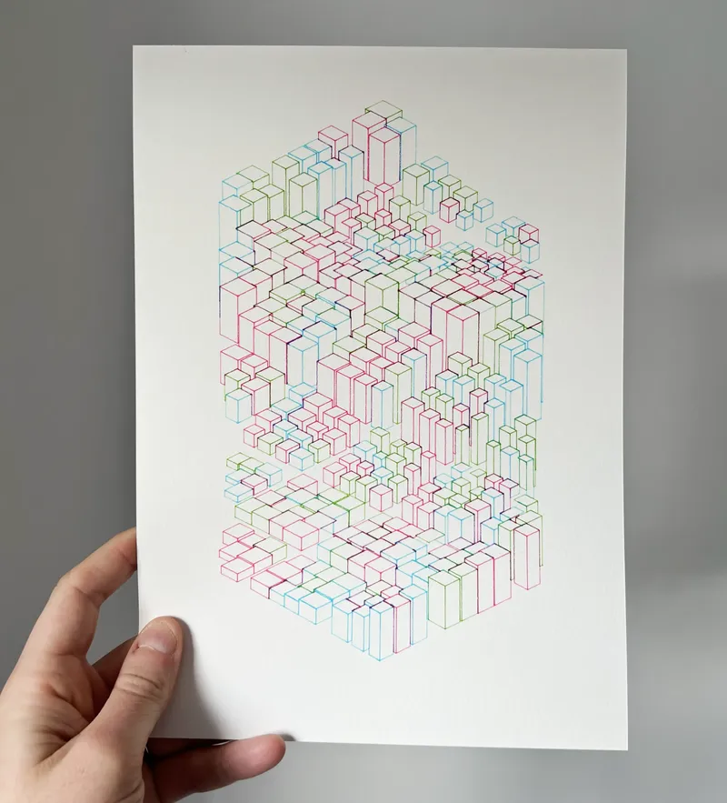 The initial test was using it to plot a grid of cubes, with sizes driven by a Perlin noise field: