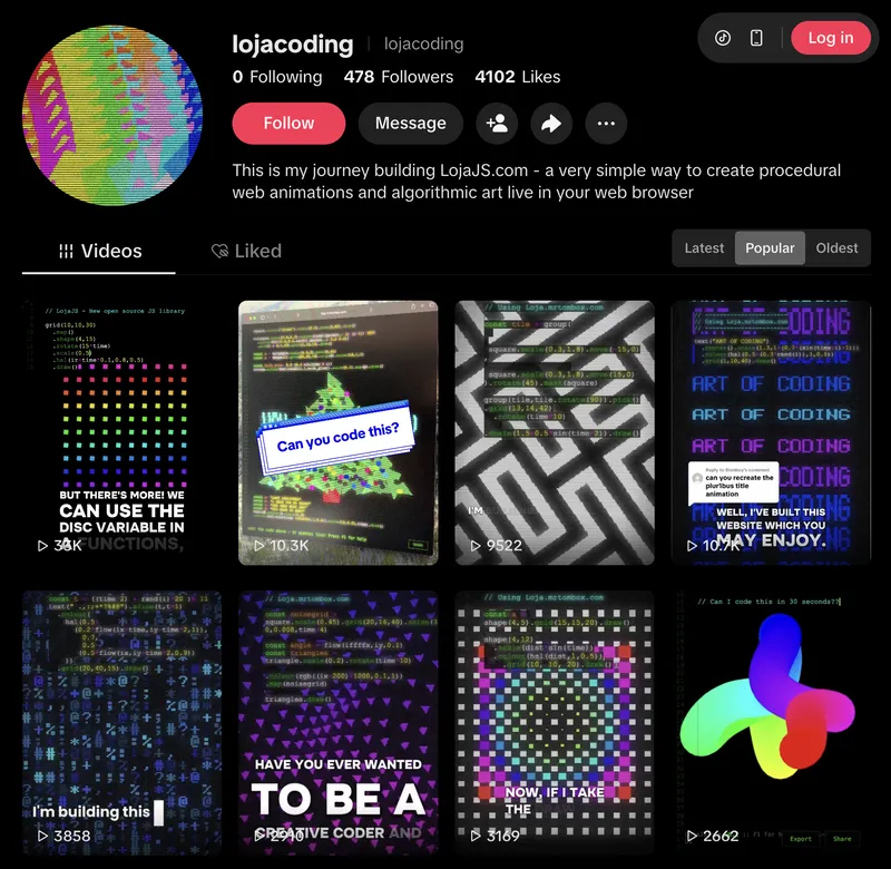 I last experimented with social algorithms sharing my plotter art, which I posted about on the Plotting TikTok post, and I wanted to see how TikTok's algorithm has changed in the multi-year period since, and also how YouTube shorts compares with TikTok when posting similar content.
