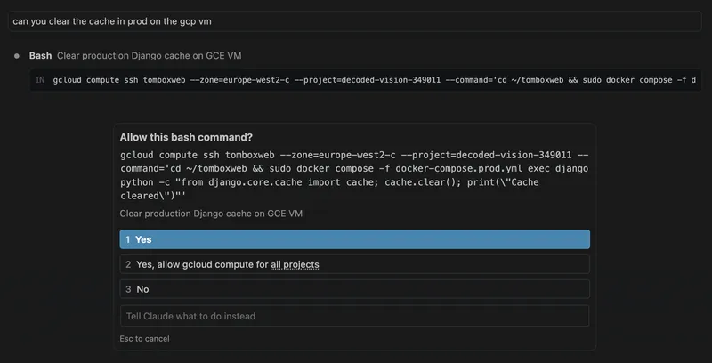 For example, to clear the cache on the VM I just ask it in plain English, and quickly scan the command before execution, to check it's not doing anything it shouldn't: